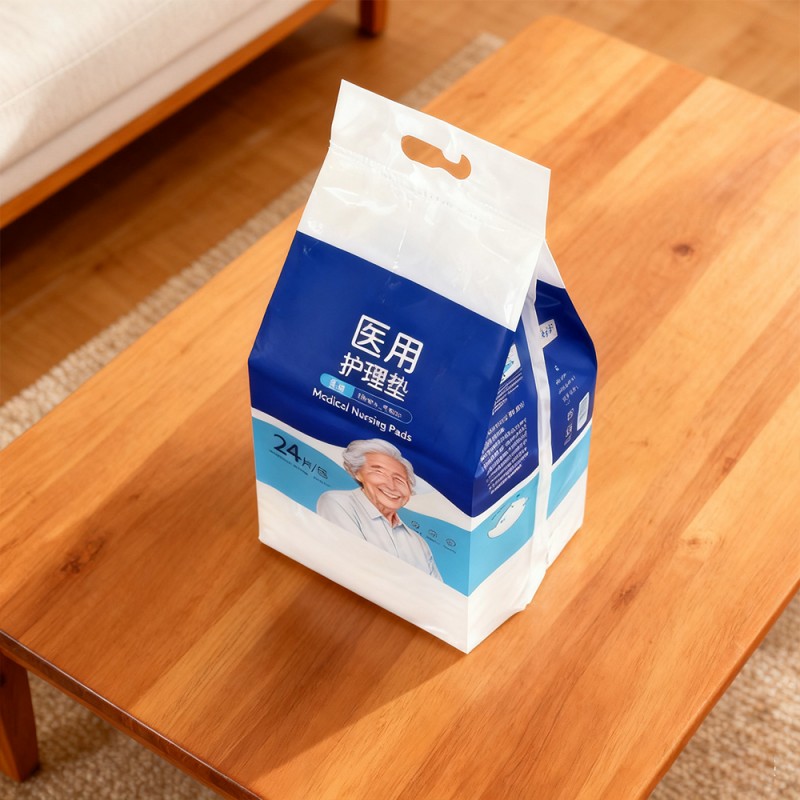 QINGDAO RED GOLDEN STAR PACKAGING AND PRINTING CO., LTD Les sacs hygiéniques scellés à quatre bords de haute qualité soigneusement conçus sont actuellement la méthode d'emballage dominante sur le marché. Ce sac est fabriqué à partir de stratifiés PET et PE de haute qualité, utilisant une technologie avancée d'étanchéité sur quatre côtés pour offrir une protection contre les fuites inégalée, une excellente durabilité et une commodité discrète. Ce sac est utilisé pour emballer des produits d'hygiène personnelle tels que des serviettes hygiéniques, des serviettes pour chiots et des produits d'incontinence pour adultes. Cela peut réduire le volume du produit et garantir la propreté du produit.