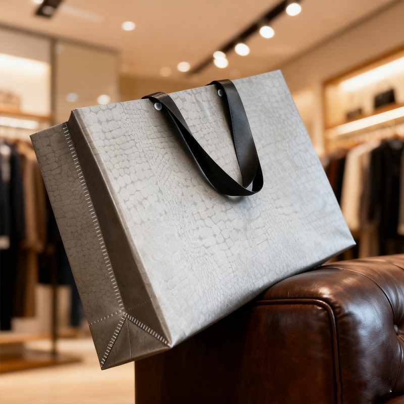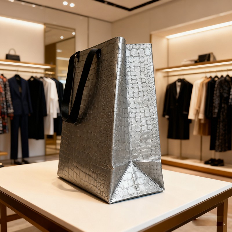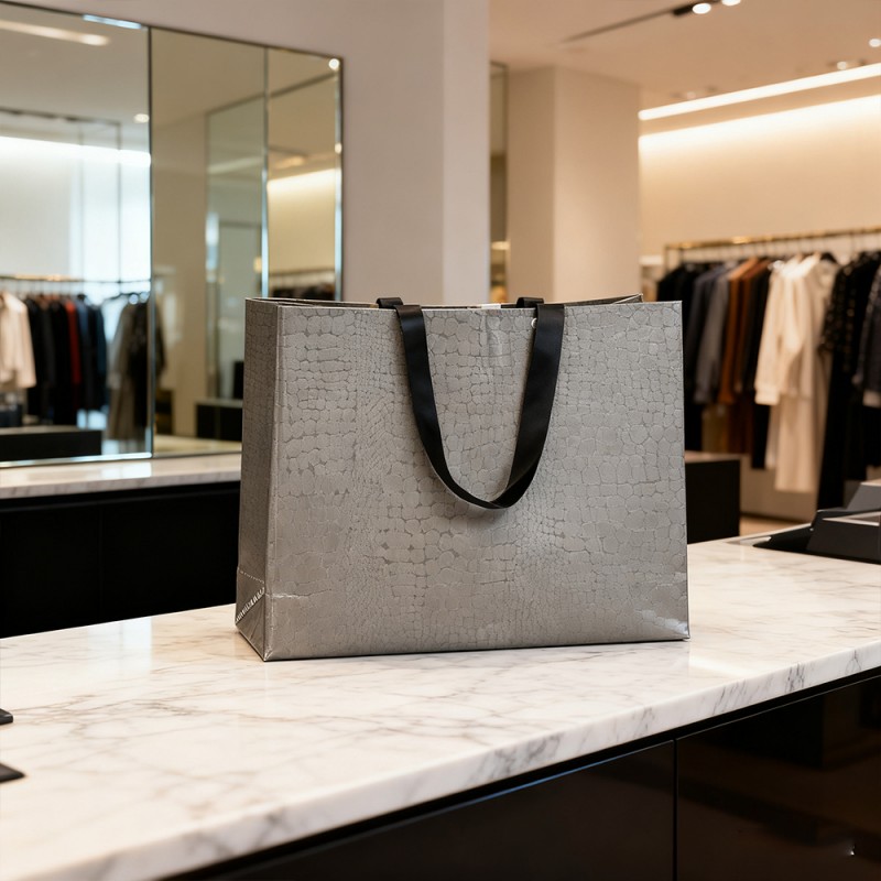 Traitement de surface élégant : la couche VCM crée une surface semblable à du cuir haut de gamme avec un toucher lisse et un aspect visuellement saisissant. Il a une finition très brillante ou mate, qui peut immédiatement transmettre une sensation de luxe. Excellente durabilité : il présente une excellente résistance aux rayures, à l’usure et à l’usure quotidienne. Cela garantit que le produit peut rester longtemps dans son état d'origine, ce qui rend le sac hautement réutilisable. Imperméable et résistant à l'humidité : ce produit peut empêcher efficacement les débordements, l'humidité et l'humidité, offrant une excellente protection pour le contenu. Excellente imprimabilité : la surface VCM parfaitement lisse est la toile idéale pour l’impression haute définition. Il utilise des techniques d’impression offset, d’héliogravure ou de sérigraphie pour fournir une reproduction exceptionnellement claire, vibrante et colorée de vos logos et œuvres d’art. Personnalisation personnalisée : Grâce à des processus secondaires tels que l’estampage à chaud (or, argent) et la sérigraphie, améliorez encore votre design. Ces options ajoutent une dimension tactile et multisensorielle à votre marque. Structure durable : nous utilisons des matériaux à haute résistance et résistants aux déchirures pour garantir une structure complète. La poignée est parfaitement intégrée au produit grâce à un pressage par ultrasons, offrant une résistance fiable pour transporter des objets plus lourds. Réutilisabilité pratique : la combinaison de durabilité et de design intemporel encourage les clients à réutiliser les sacs dans leur vie quotidienne. Cela fera de votre emballage un outil marketing durable, promouvant votre marque longtemps après votre premier achat.